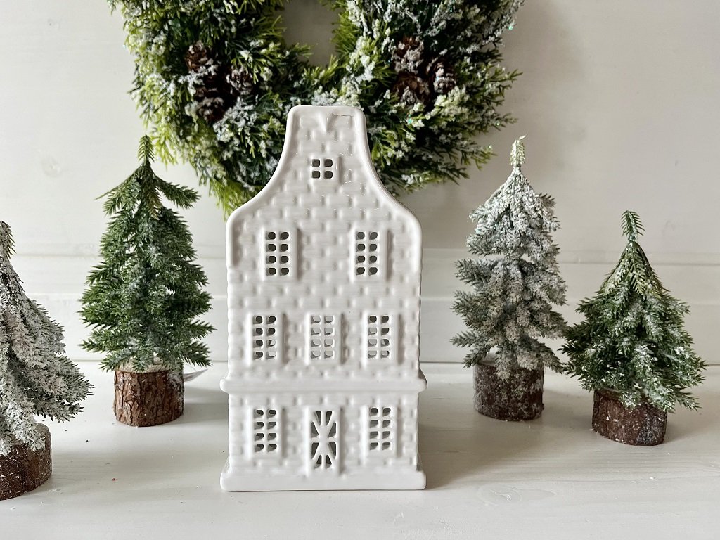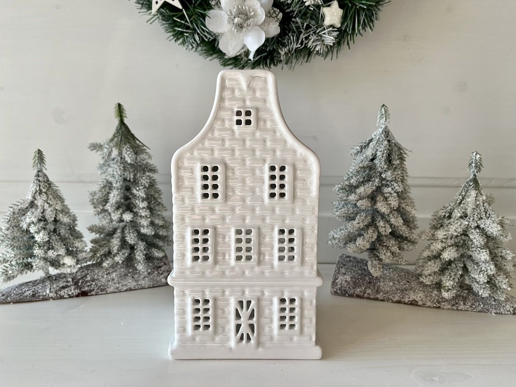 Keramický domeček na čajovou svíčku v bílé barvě mi připomíná milované Holandsko. Vzhledem k jeho neutrálnosti ho můžete mít vystavený v průběhu celého roku.