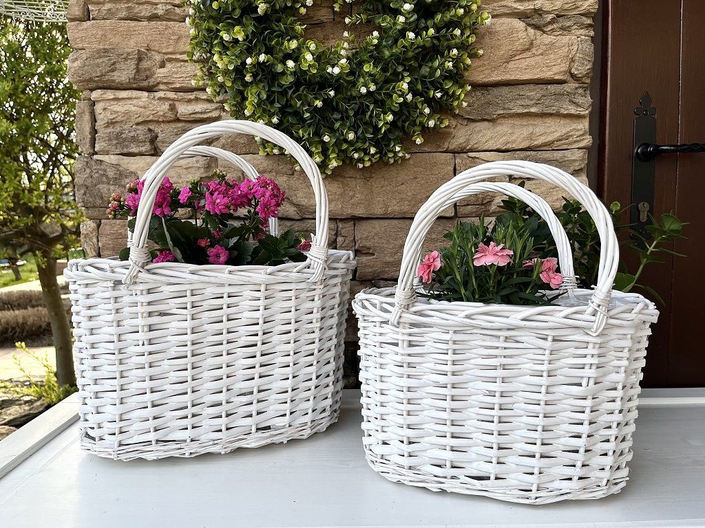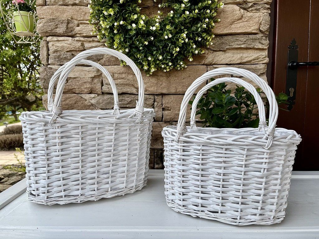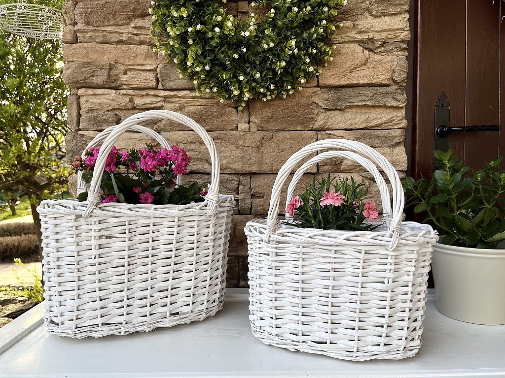 Bílý proutěný koš ve tvaru tašky k osázení zaujme svou originalitou. Zasaďte si do něj živé květiny nebo naaranžujte sušené a krásná dekorace je na světě. Pro milovnice venkovského stylu.