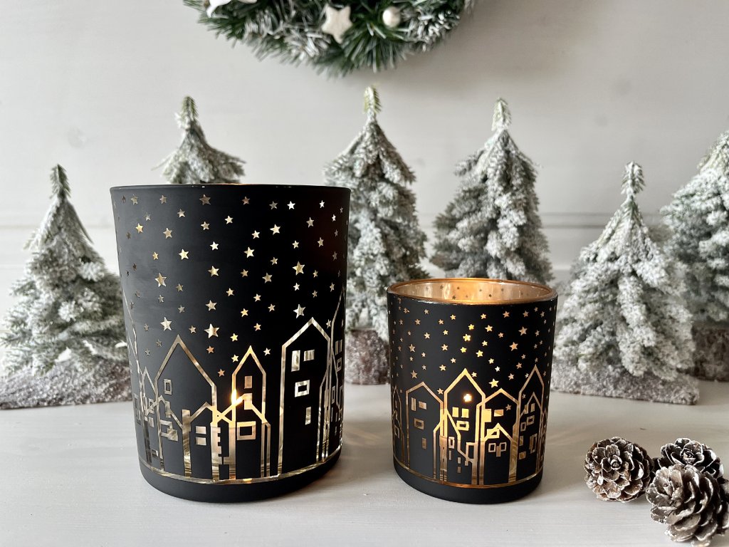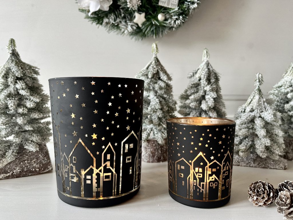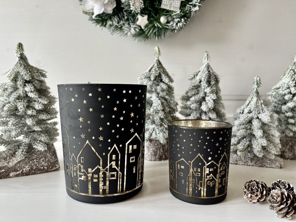 Svícnů a svícínků není nikdy dost a o Vánocích to platí dvojnásob. Obohaťte svou sbírku černo-zlatým skleněným svícnem s domečky pod hvězdnou oblohou a vytvořte si slavnostní aranžmá, které podtrhne kouzelnou atmosféru vánočních svátků u Vás doma.