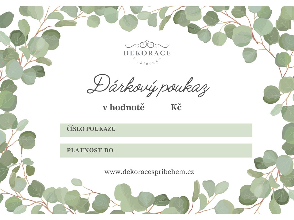 * Dárkový poukaz lze uplatnit pouze na zboží nabízené na stránkách obchůdku Dekorace s příběhem (www.dekoracespribehem.cz).