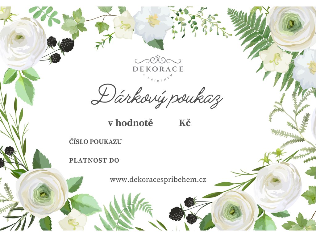 * Dárkový poukaz lze uplatnit pouze na zboží nabízené na stránkách obchůdku Dekorace s příběhem (www.dekoracespribehem.cz).