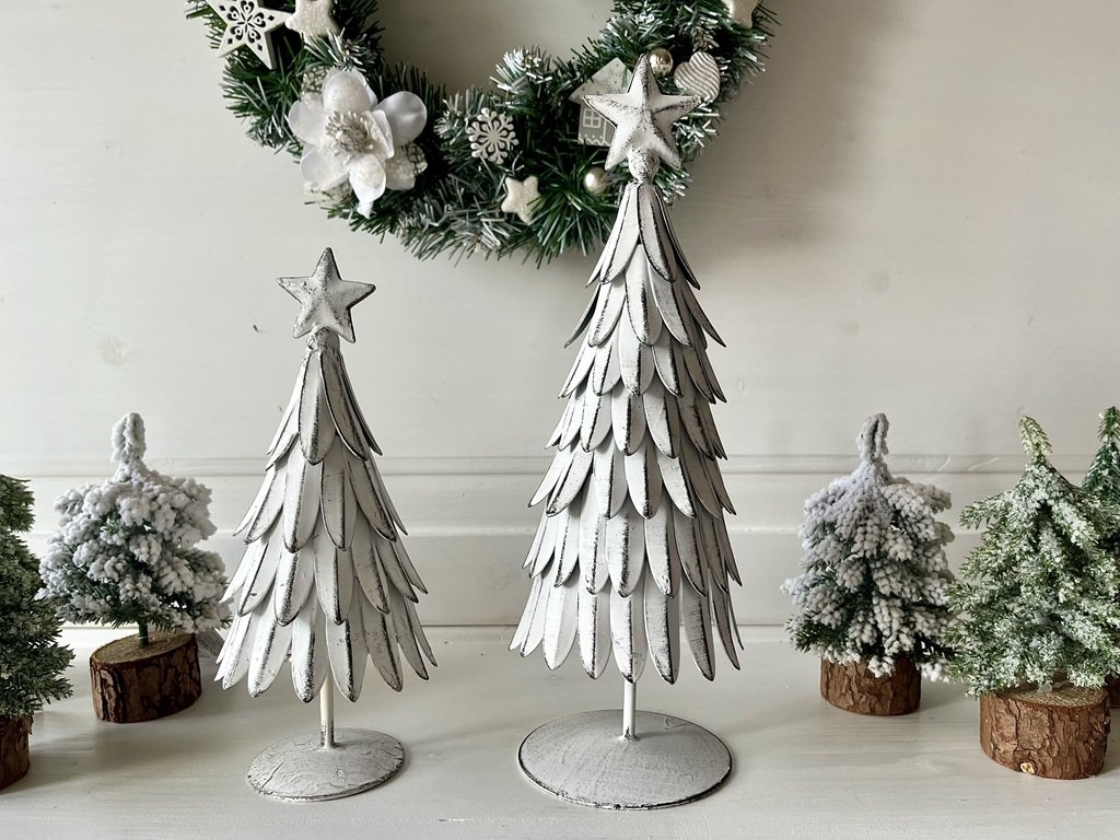Ozdobte si Vánoce. Bílý kovový stromek s patinou a hvězdičkou na špičce dotvoří atmosféru Vašich slavnostních aranžmá.