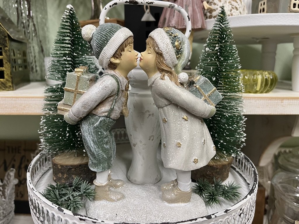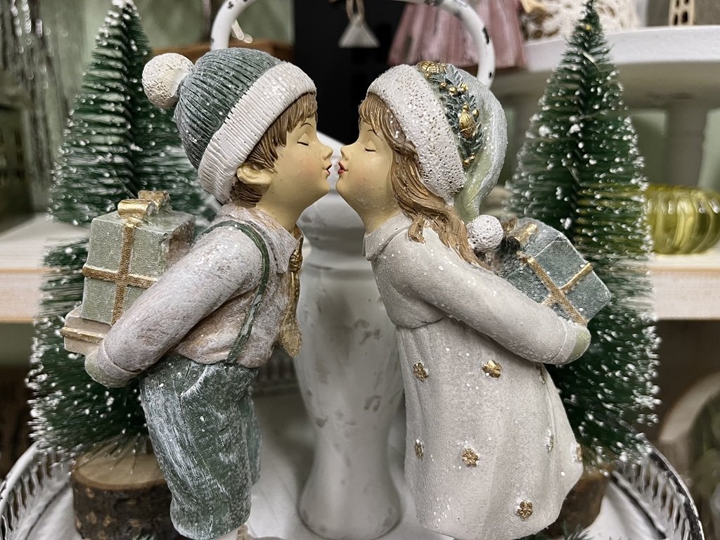 Ozdobte si Vánoce. Figurky dětí s dárečky dávající si pusu dotvoří kouzelnou vánoční atmosféru u vás doma. Můžete si je dát na komodu, parapet, stůl či slavnostně nazdobený etažér.