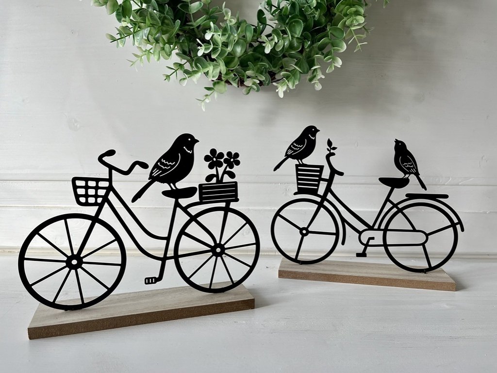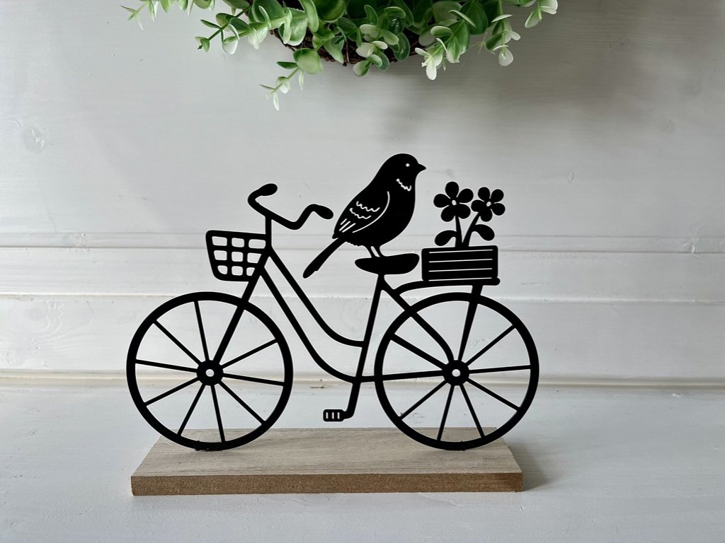 Ozdobte si jaro. Černé kovové kolo na dřevěném podstavci s motivem ptáčků a květin potěší všechny milovnice tohoto období, co rády dekorují a chtějí to mít doma hezké.