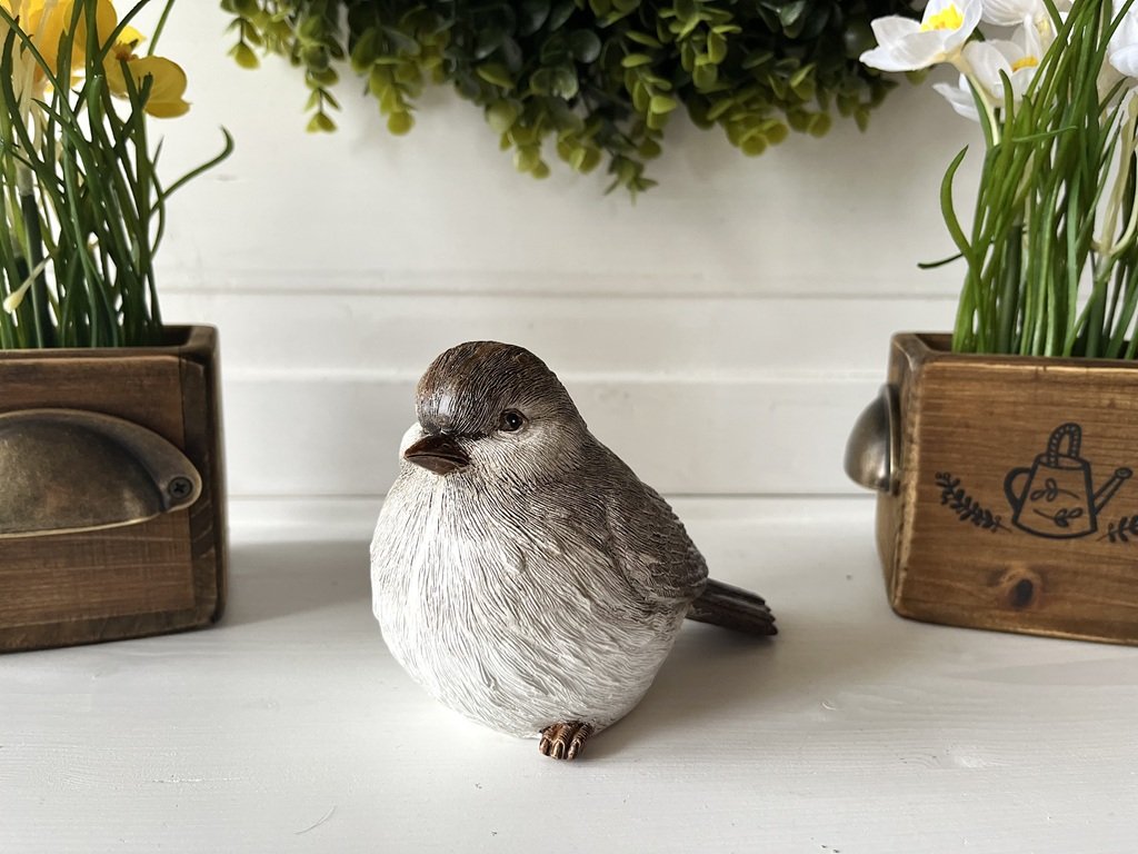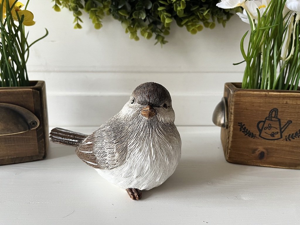 Detailně propracovaný bílo-hnědý ptáček vypadá jako živý a podtrhne kouzlo vašich celoročních aranžmá.