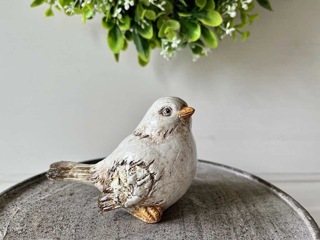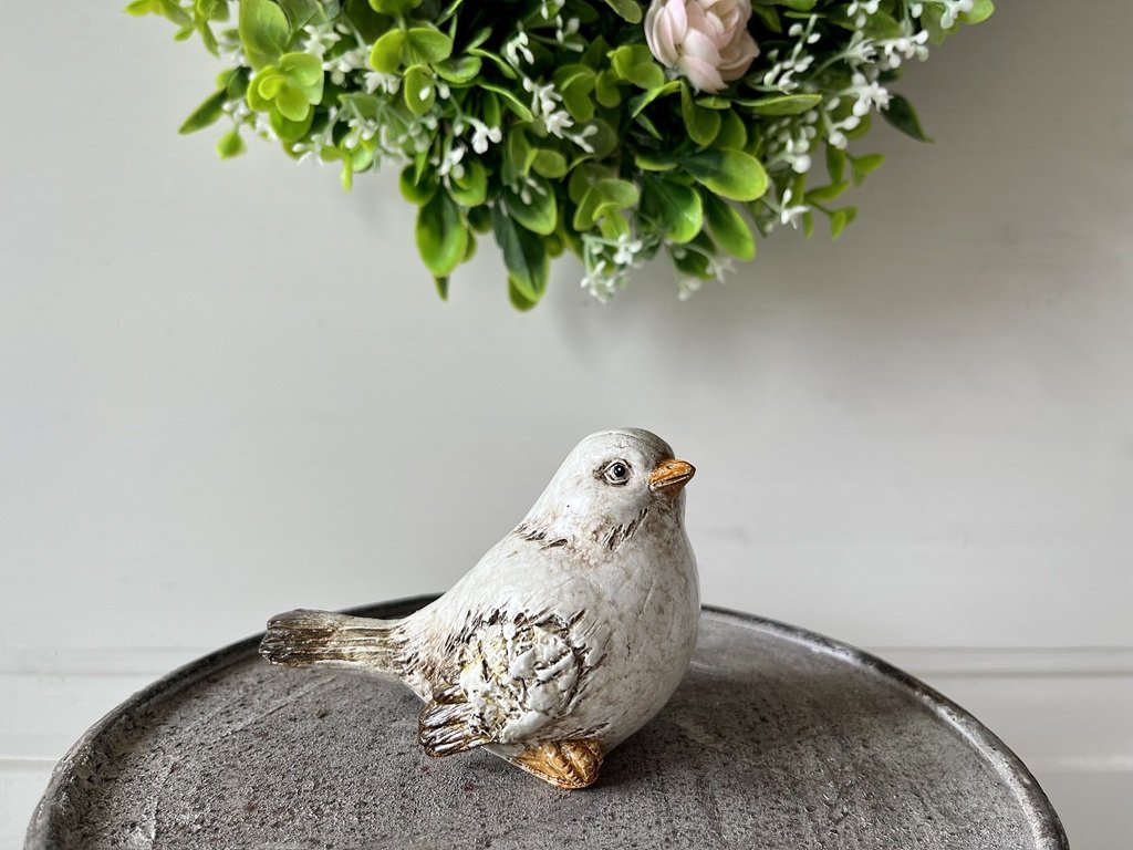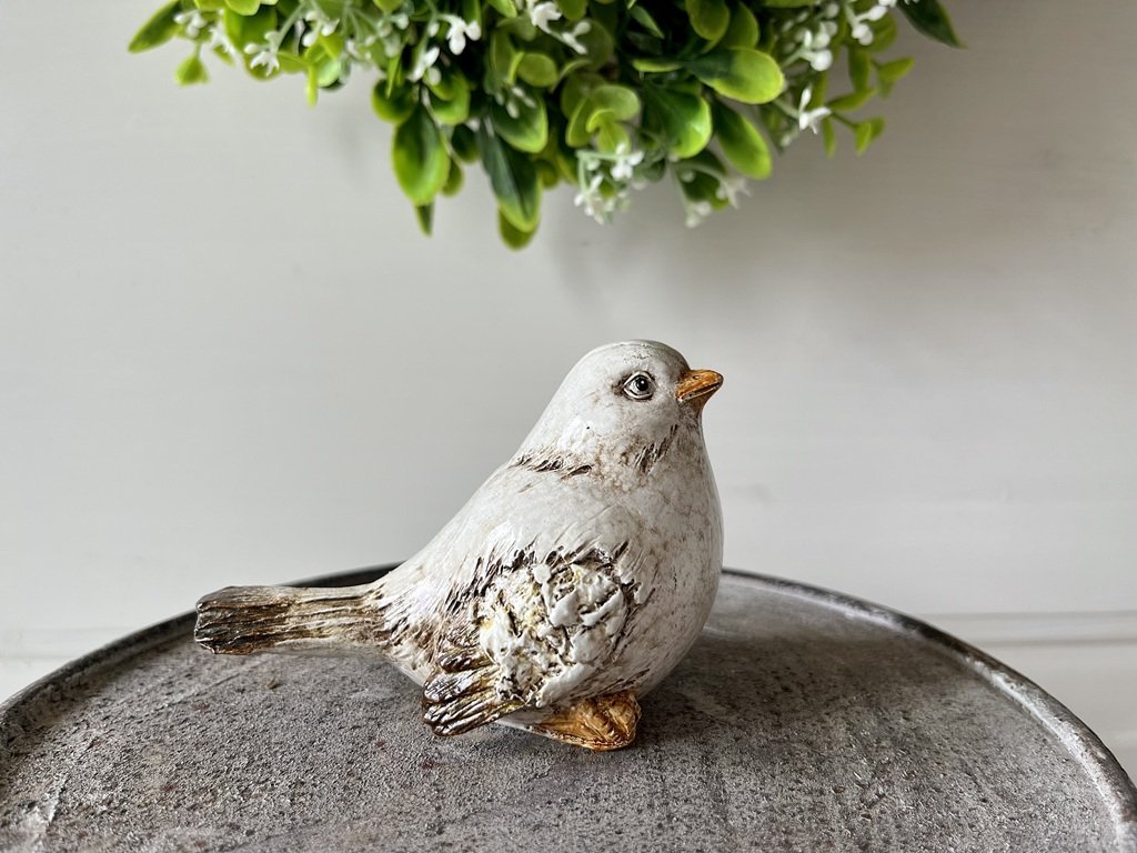 Detailně propracovaný krémový ptáček s hnědým nádechem na křídlech a ocase vypadá jako živý a podtrhne kouzlo Vašich celoročních aranžmá.