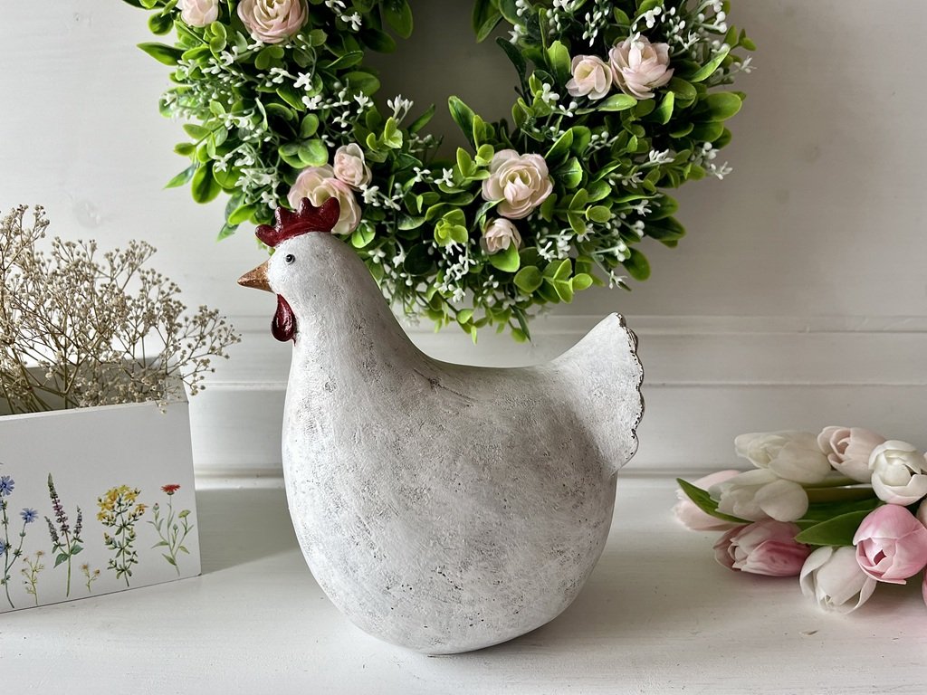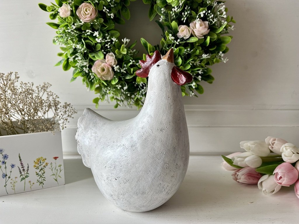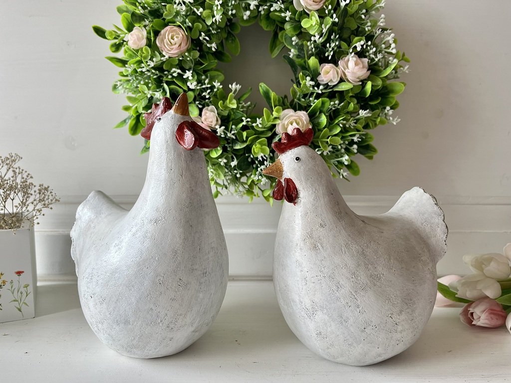 Tak tento párek nepřehlédnete. Bílá slepička a kohoutek se stanou nepřehlédnutelnými ve Vašich jarních aranžmá, ať už na stole, komodě či na zahradě.