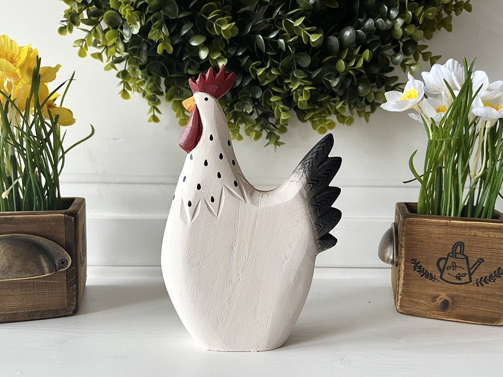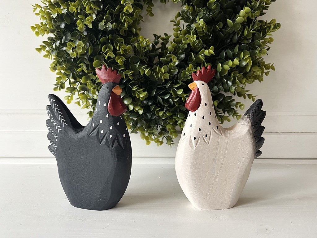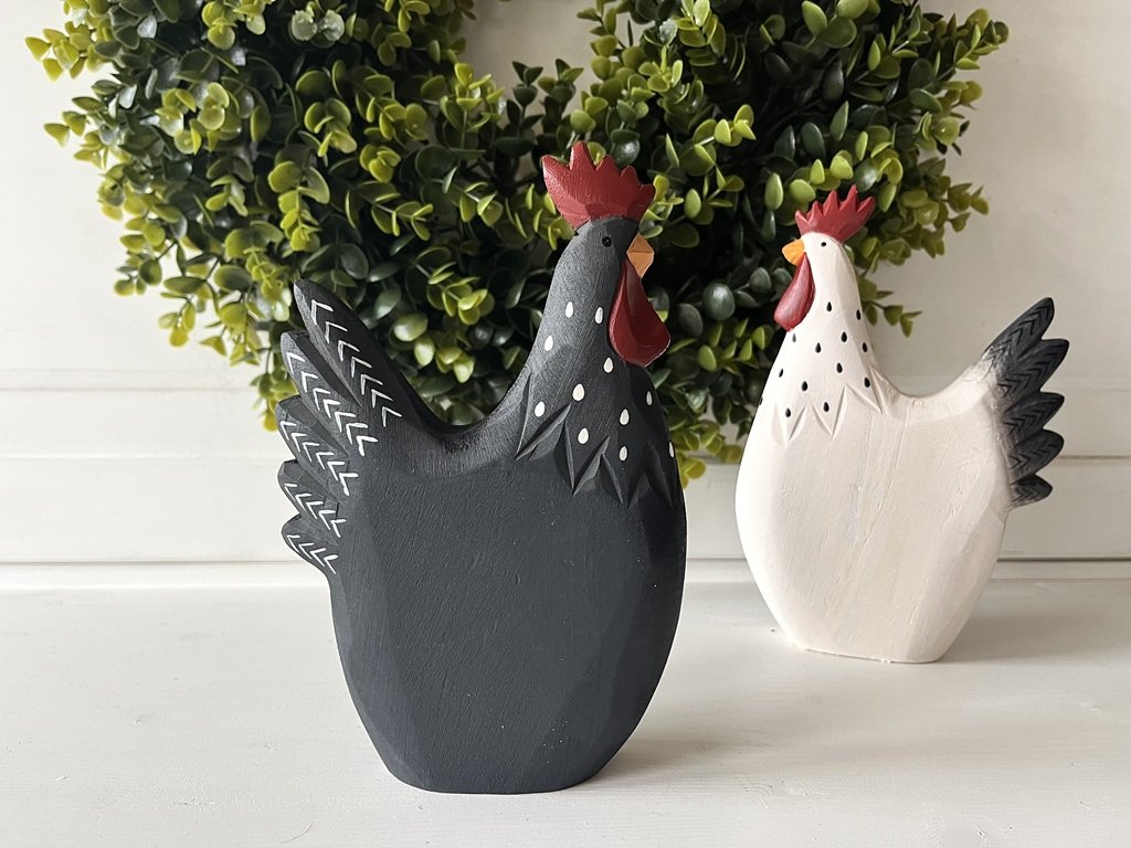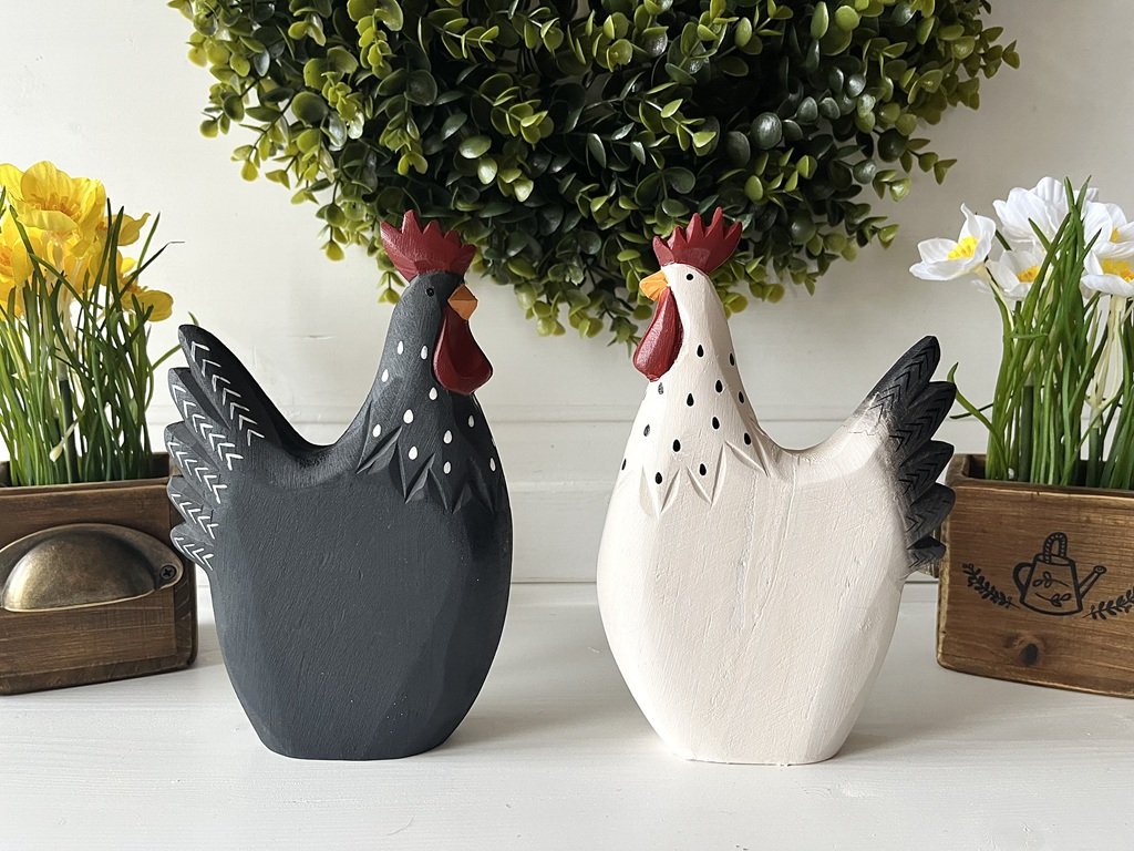 Tak tento párek nepřehlédnete. Černá slepička a bílý kohout se stanou nepřehlédnutelnými ve Vašich jarních aranžmá, ať už na stole, komodě či na zahradě.