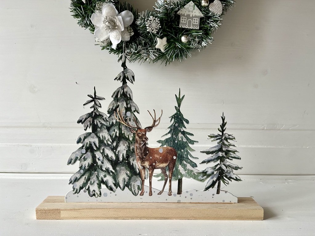 Ozdobte si Vánoce. Zasněžený les s jelenem na dřevěném podstavci dotvoří atmosféru Vašich slavnostních aranžmá. Dekoraci si můžete postavit na komodu, stůl či okenní parapet. A pokud ji doplníte o světelný řetěz, zútulní Váš domov i za dlouhých zimních večerů.