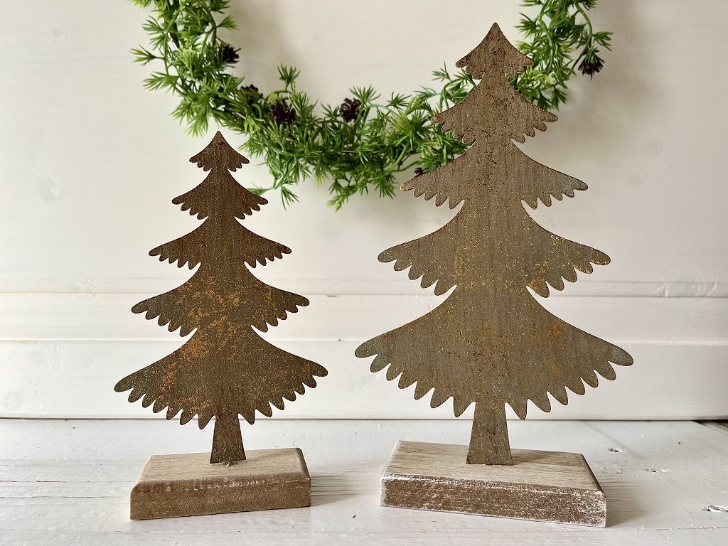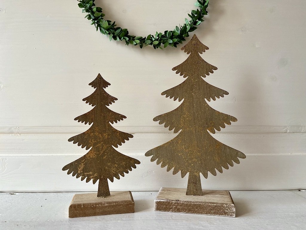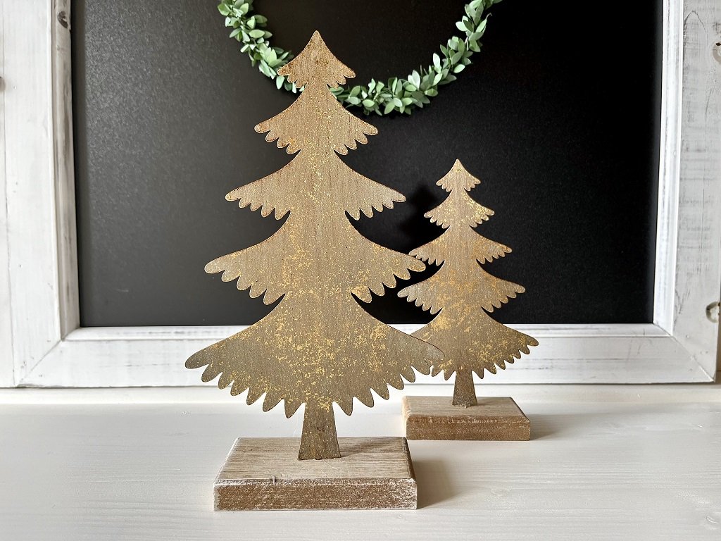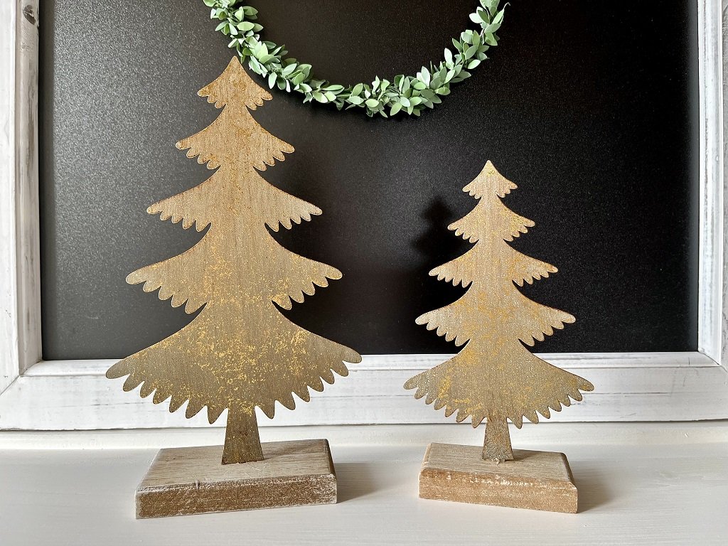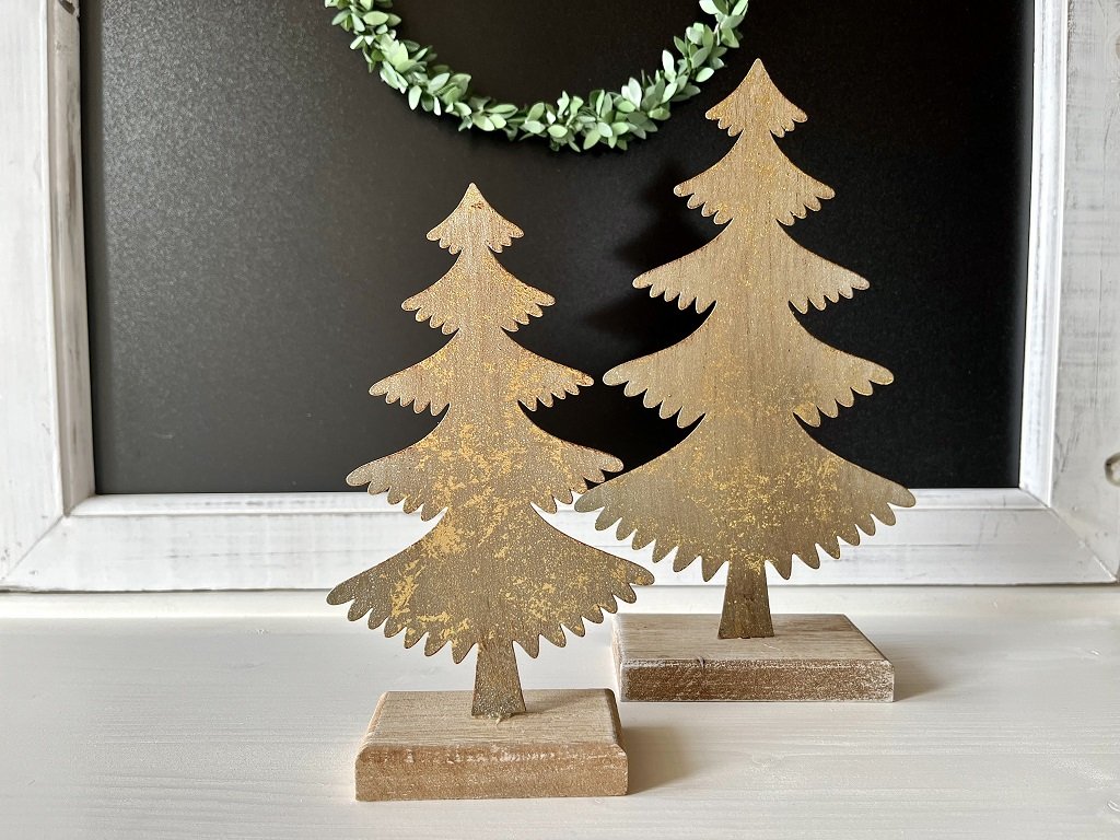Ozdobte si Vánoce. Kovový stromek ve zlaté barvě na dřevěném podstavci dotvoří atmosféru Vašich slavnostních aranžmá.