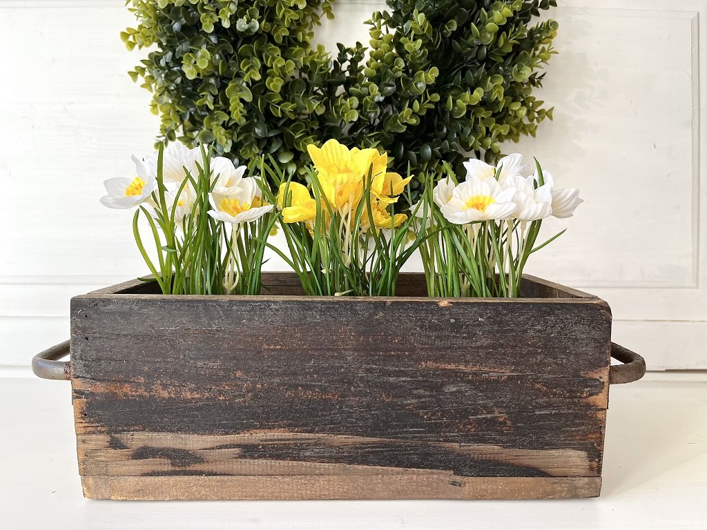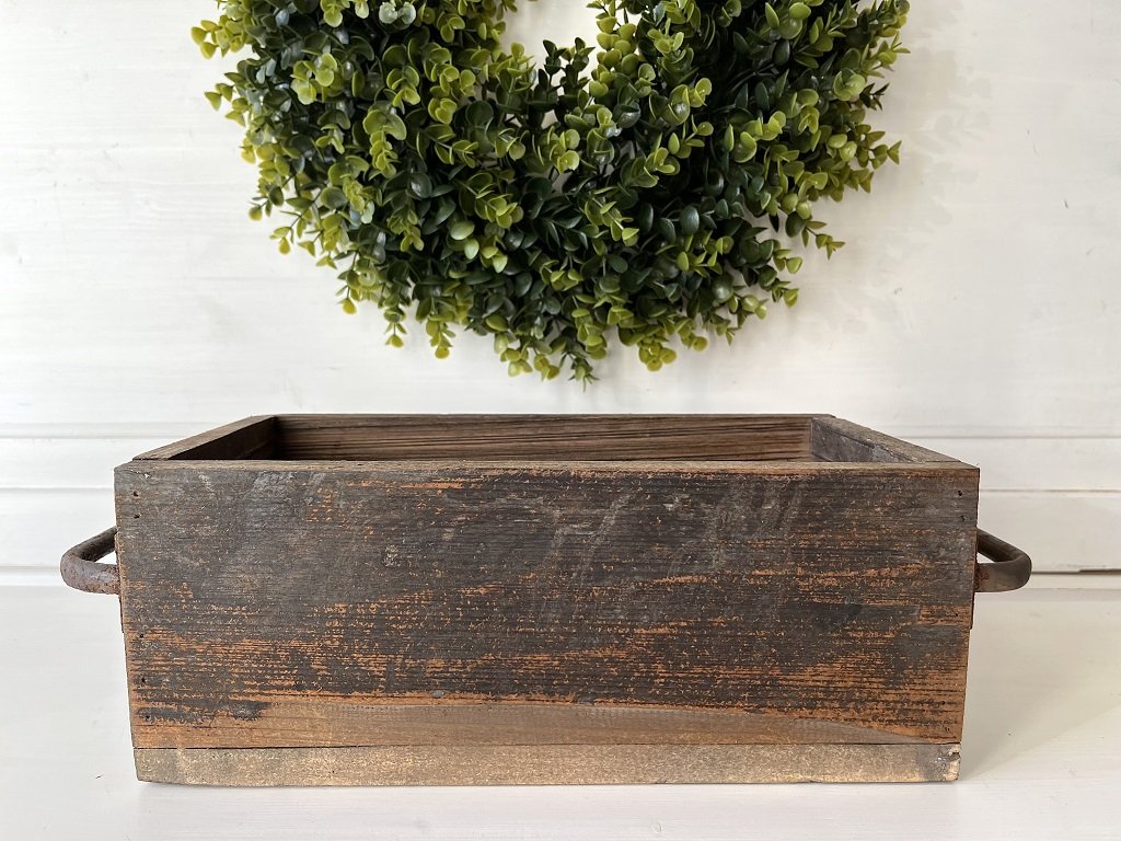 Bytelnou dřevěnou bedýnku s kovovými uchy v rustikálním provedení můžete využít celoročně pro tvorbu vašich aranžmá.