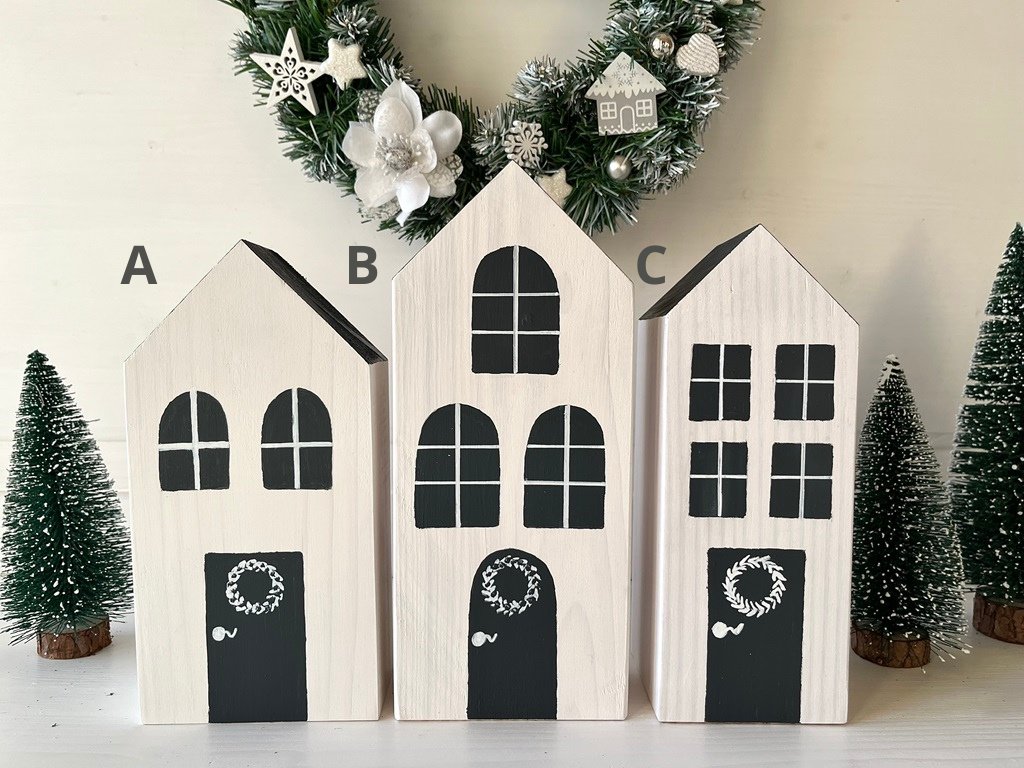 Dřevěné zimní domečky z naší dílny v bílé barvě a tmavou střechou vytvoří kouzelnou atmosféru u Vás doma. Nakombinujte si je v různých barvách a velikostech a vytvořte si vlastní městečko.