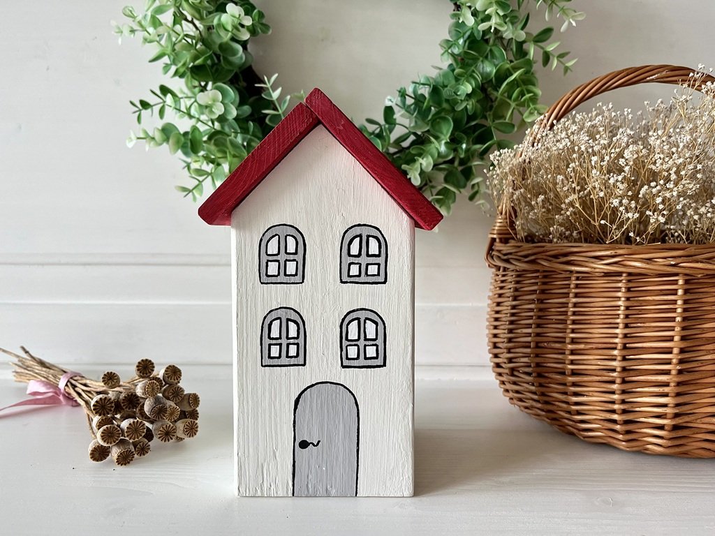Dřevěný bílý domeček s červenou střechou využijete jako celoroční dekoraci. Nakombinujte si ho s dalšími domečky v různých barvách a velikostech a vytvořte si tak vlastní městečko.