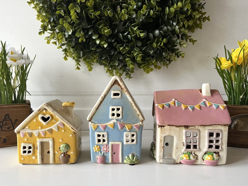 Ozdobte si domov. Jarní keramické domečky ve třech barevných variantách potěší všechny ženy, co rády dekorují a chtějí to mít doma hezké.