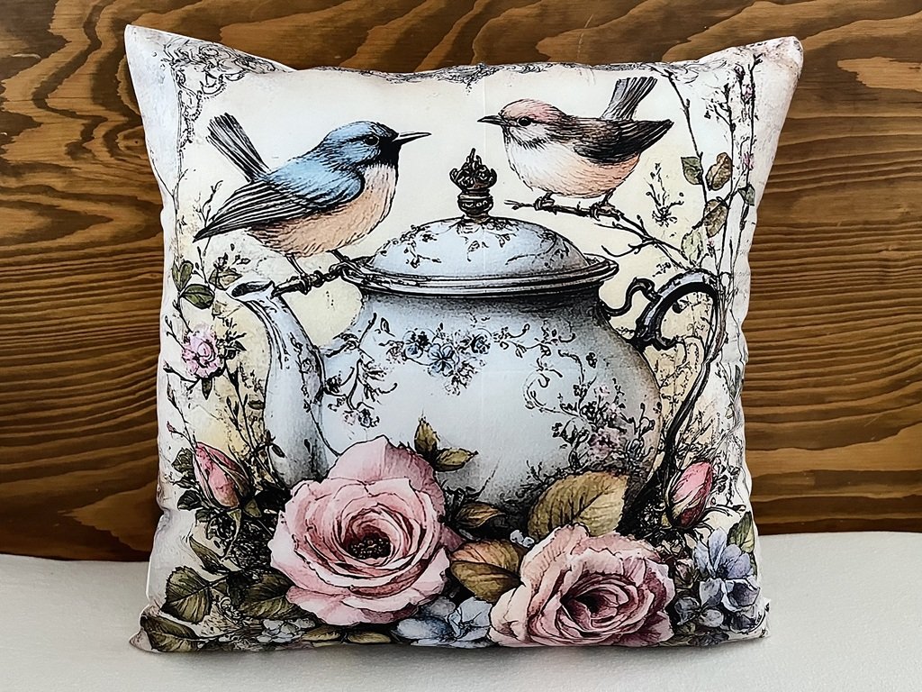 Ozdobte si jaro. Dekorační povlak na polštář s ptáčky, čajovou konvicí a květinami vnese do Vašeho interiéru kouzelnou atmosféru jara. Nakombinujte ho s jinými polštáři a útulnost je zaručena.