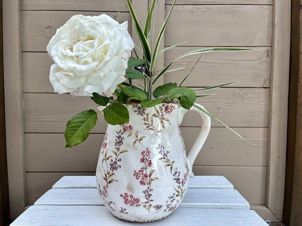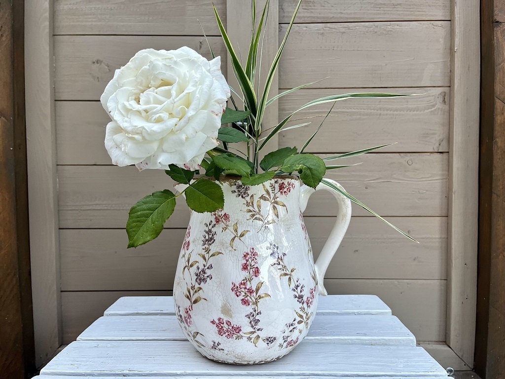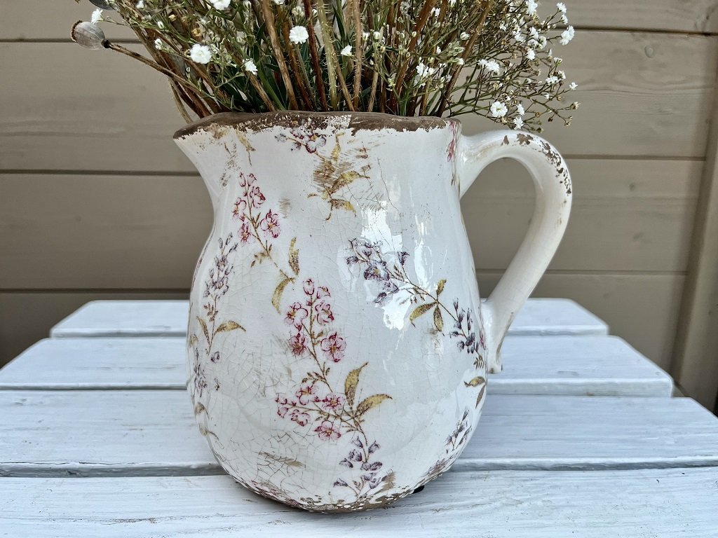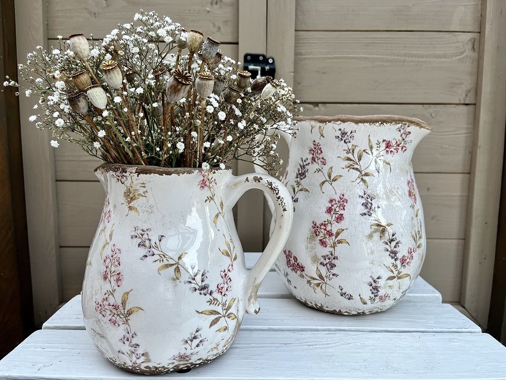 Krásný keramický džbán s jemným motivem lučních květů na béžovém podkladu vás přenese do časů našich babiček. V obchůdku je k dostání ve dvou velikostech.