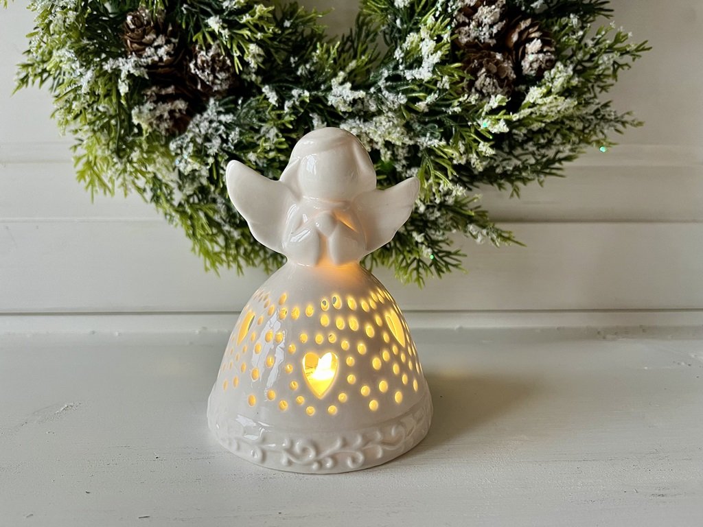 Ozdobte si Vánoce. Keramický LED anděl s teplým žlutým osvětlením dotvoří atmosféru Vašich slavnostních aranžmá.