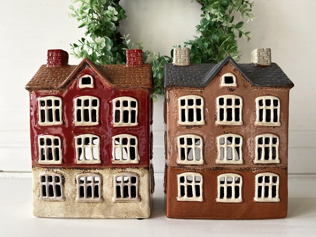 Velký keramický domek na čajovou svíčku ve dvou barevných variantách vykouzlí hřejivou atmosféru ve vašem domově za dlouhých podzimních a zimních večerů. Nakombinujte si jich několik dohromady a vytvořte si vlastní malé městečko.