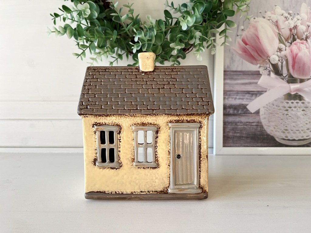 Keramický domek na čajovou svíčku v krémové barvě vykouzlí hřejivou atmosféru ve vašem domově za dlouhých podzimních a zimních večerů. Nakombinujte si jich několik dohromady a vytvořte si vlastní malé městečko.