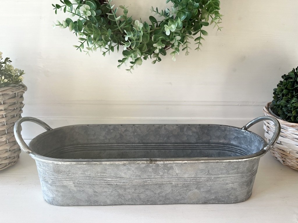 Plechovou oválnou nádobu s uchy můžete osázet jarními květinami jako jsou petrklíče, modřence, macešky nebo ho využít jako základ pro tvorbu vlastních dekorací.