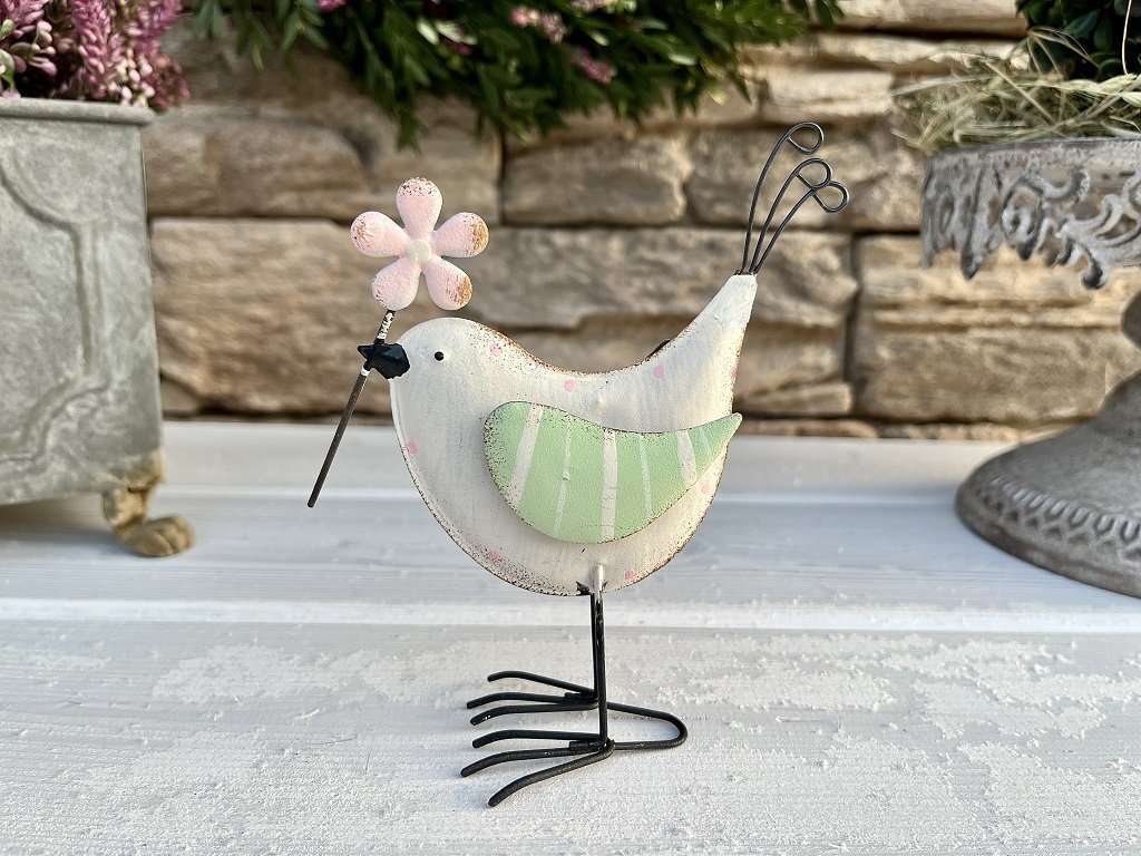Plechový ptáček ve smetanové barvě pro veselou atmosféru Vašich celoročních aranžmá...