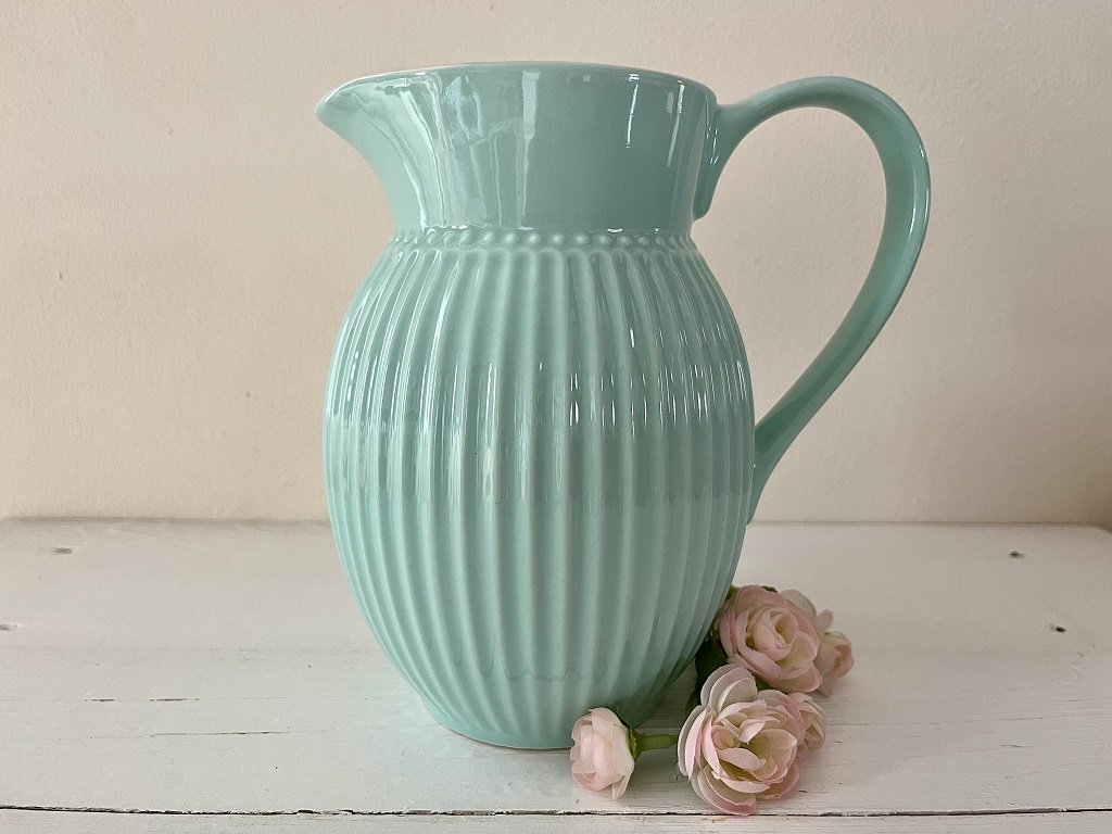 Jemné detaily, jednoduchost a elegance charakterizují džbán v mátové barvě z kolekce Alice pro všední den. Naaranžujte do něj květiny, co vám právě kvetou v zahradě nebo ty, co jste si přinesli z květinářství.