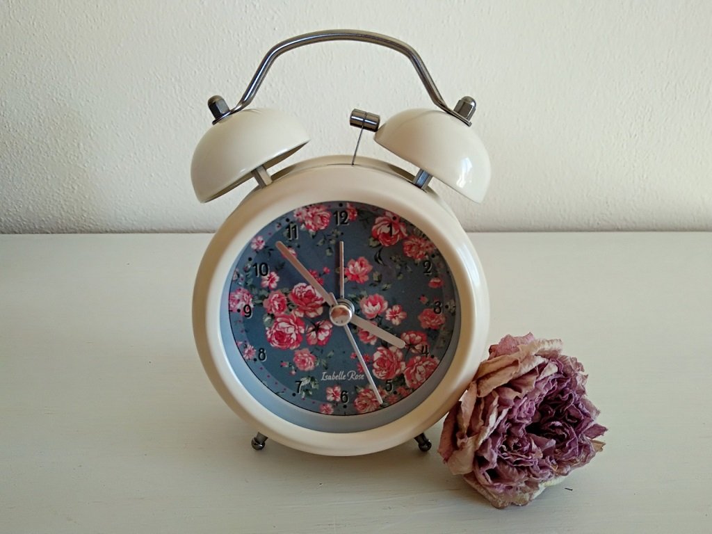 S retro budíkem ve smetanové barvě budou Vaše rána opět stříbrná. Vydává klasický zvonivý zvuk, ciferník s dekorem drobných růží lze rozsvítit.