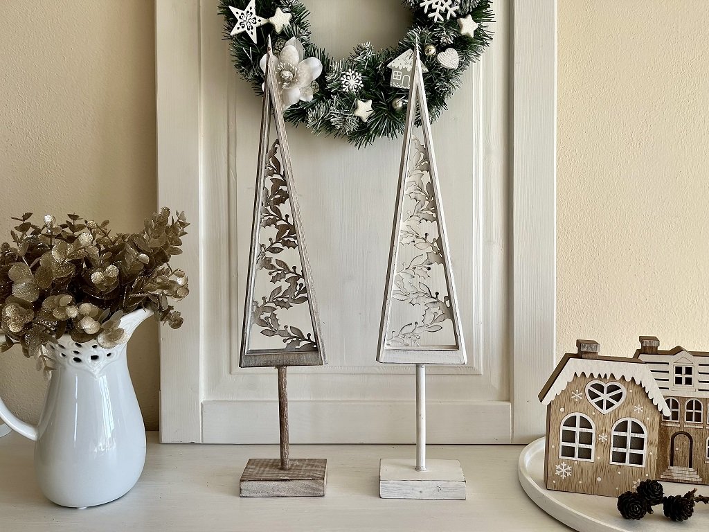 Ozdobte si Vánoce. Šedý dřevěný stromek s motivem cesmíny dotvoří atmosféru Vašich slavnostních aranžmá.