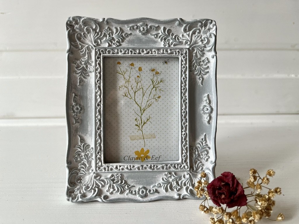 Šedý fotorámeček s jemným květinovým motivem pro uchování Vašich vzpomínek, aby nikdy nevybledly...