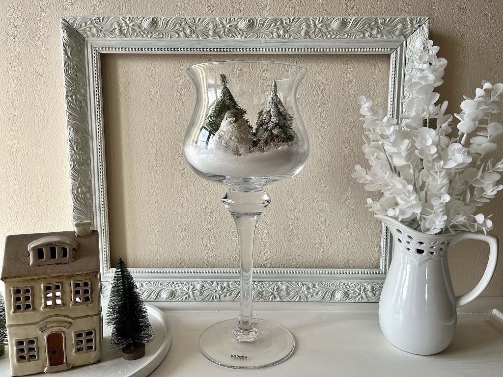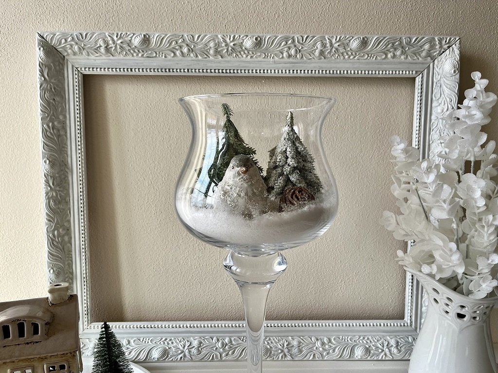 Ozdobte si Vánoce. Nádherný skleněný svícen na vysoké noze se stane nepřehlédnutelným ve Vašich slavnostních aranžmá. Nasypte do něho umělý sníh, vložte světýlka a drobnou dekoraci a krása je na světě.
