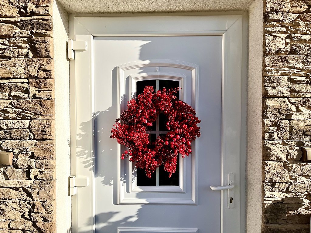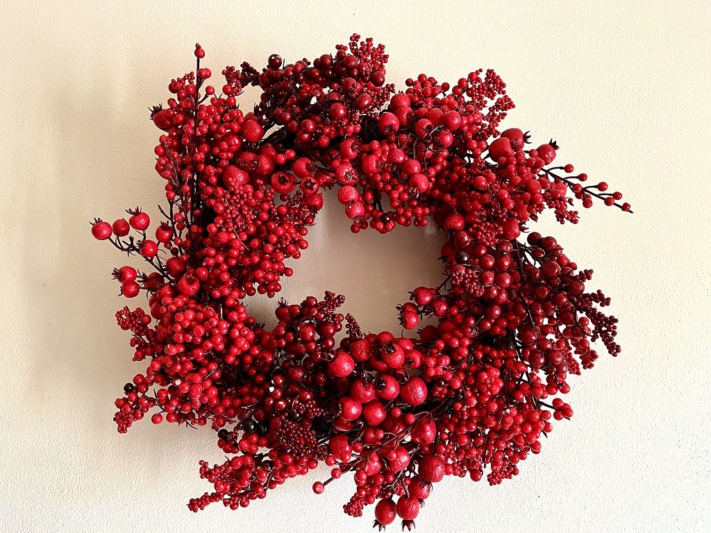 Ozdobte si Vánoce. Velký věnec s červenými bobulemi se bude krásně vyjímat na vchodových dveřích nebo na zdi a můžete ho použít i jako dekoraci na slavnostně prostřeném stole.