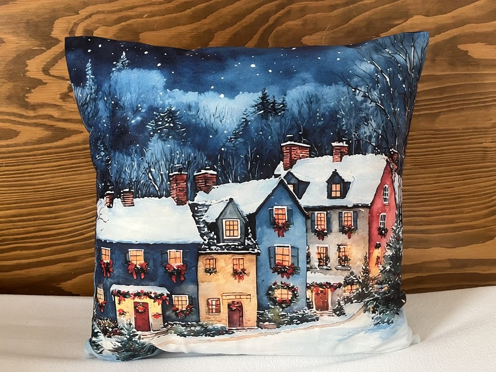 Nádherný dekorační povlak na polštář se zasněženou rozzářenou vesničkou vnese do Vašeho interiéru kouzelnou atmosféru zimy. Nakombinujte ho s jinými polštáři a útulnost je zaručena.