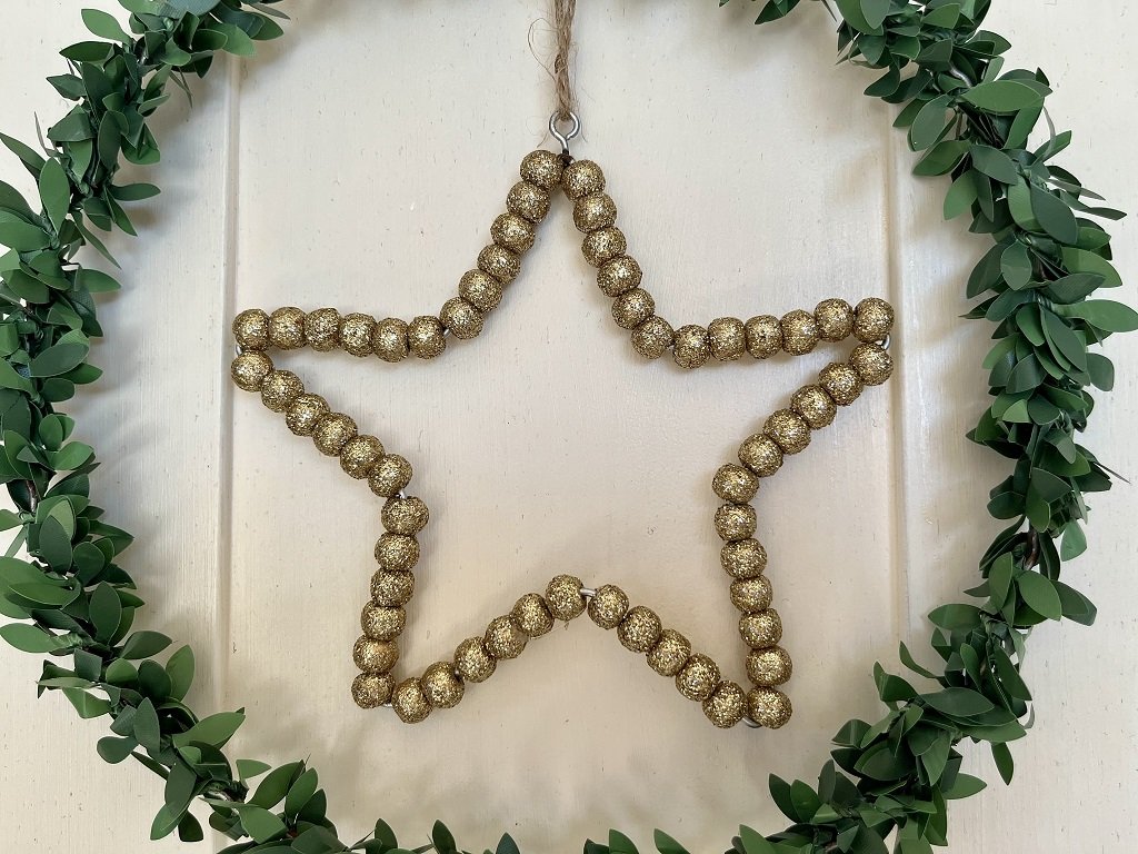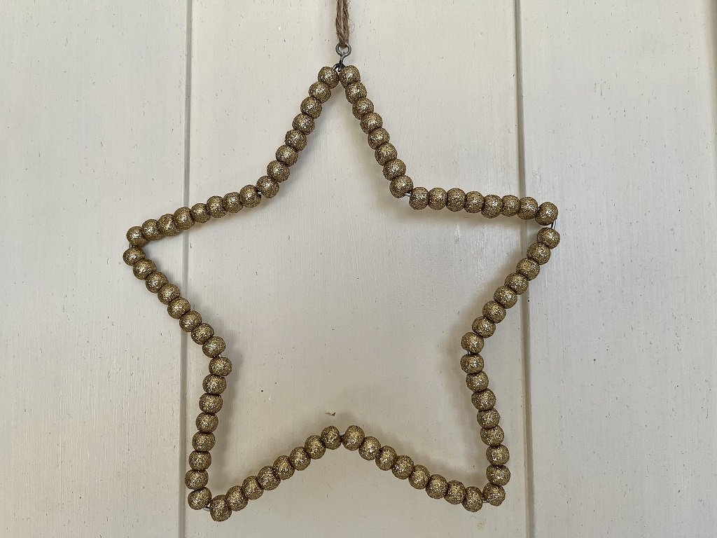 Ozdobte si Vánoce. Hvězda ze zlatých korálků zazáří na vánočním stromečku nebo ve slavnostním aranžmá. Krásně se leskne, když na ni dopadá světlo.