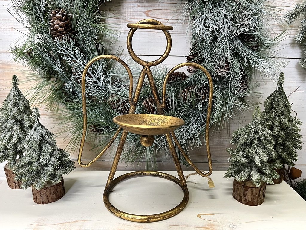 Ozdobte si Vánoce. Zlatý kovový svícen ve tvaru anděla jen tak nepřehlédnete. Vneste si do svého domova originalitu a jedinečnost a vytvořte si kouzelné slavnostní aranžmá.
